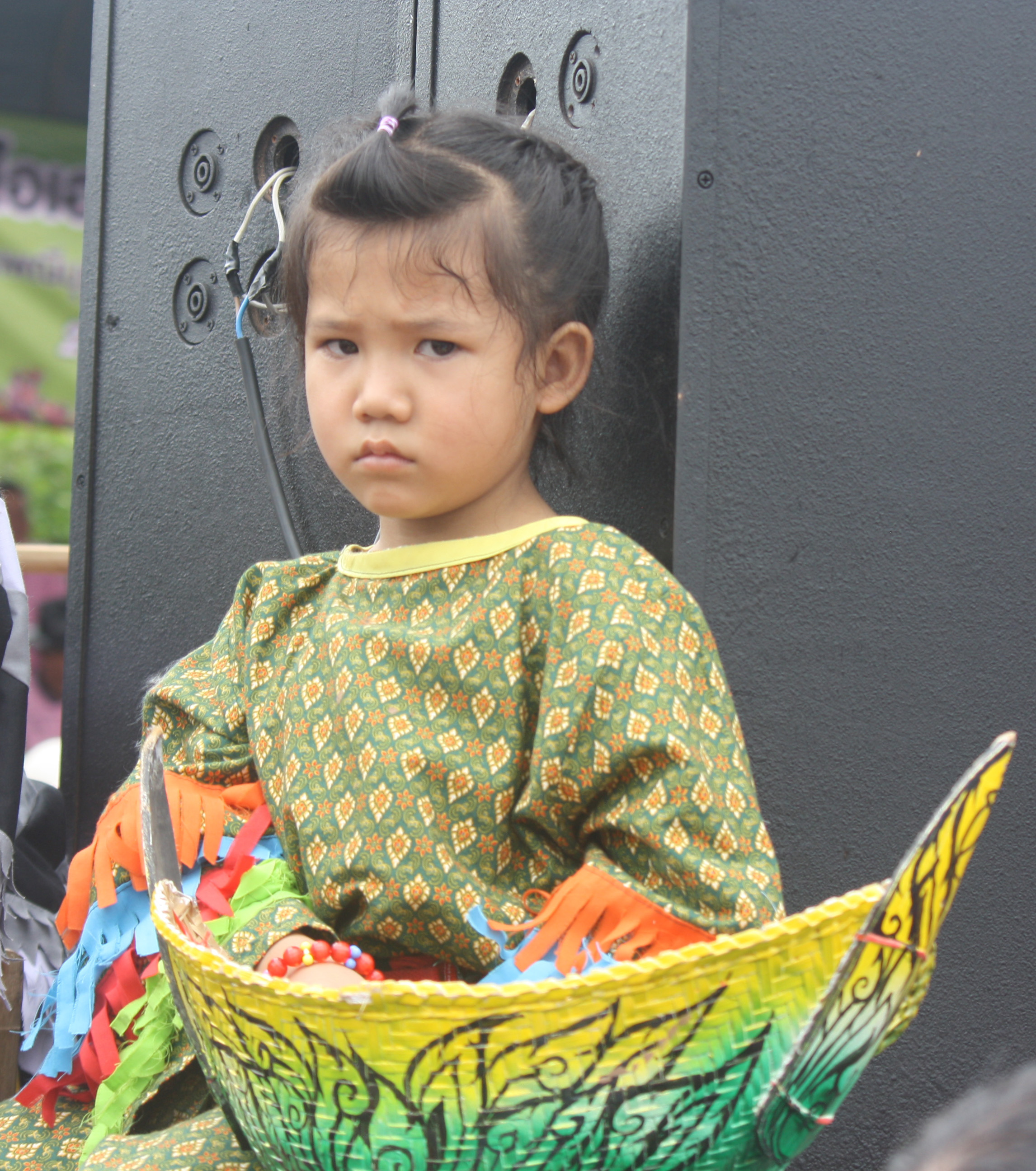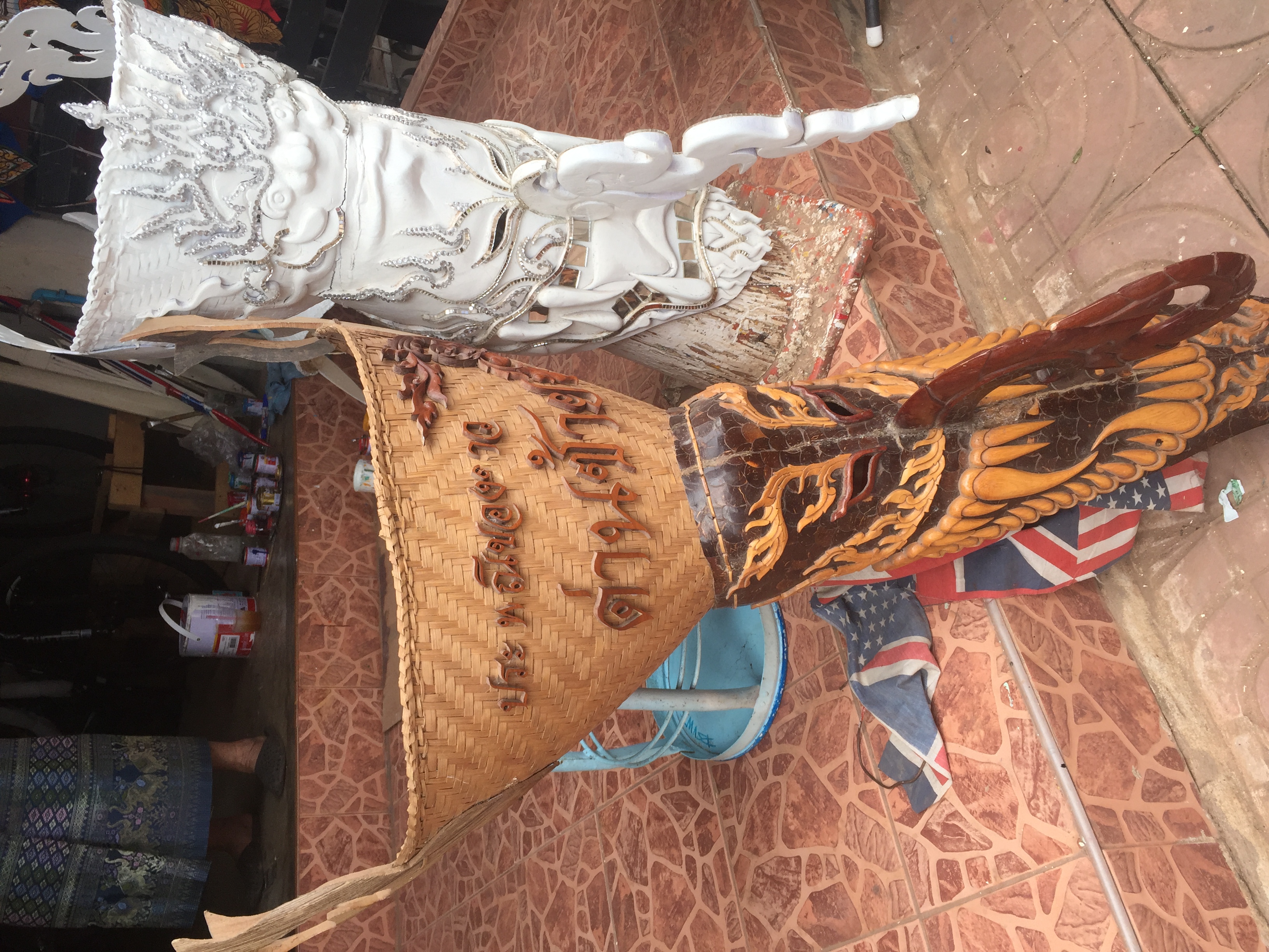 A more pervasive belief (perhaps because of later state-sponsored religious influences) relates the festival more to the dominant Theravada Buddhist religion of current day Thailand. The practice of dancing with the masks has become part of a bigger religious event, called Bun Luang (Bun means “merit making” and Luang means “grand” in this context). The Grand Merit-Making festival combines the fourth-month merit-making practice with a Mekhong River regional tradition of Bun Bungfai (Merit-making sky rockets). In Dansai, the activities including setting off these sky rockets on the second day. (The more famous rocket festival is in another Northeastern province, Yasothon). The rockets may contain good luck tokens, and might be considered as pleas to the gods of the sky.